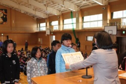 12月になりました。 本日の朝会では、たくさんの表彰伝達がありました。夏休みの応募作品から「みかわの子」や生徒指導標語、読書感想文コンクール、校内美術版画作品に入選した子どもたちの表彰です。最後にランニング認定も行われました。10月、11月…