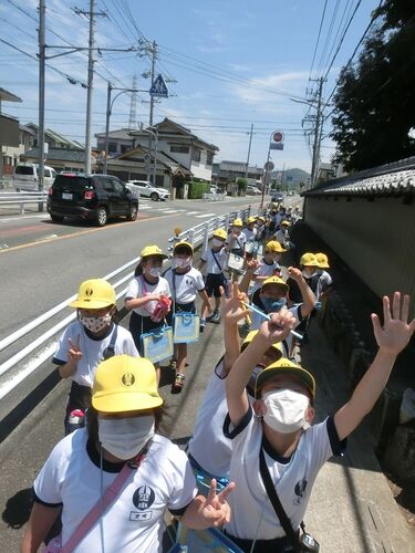2年生が学区探検にチャレンジです。今までも何度か学区を回りましたが、今回は横落です。岩堀探検との比較をしながら「あっ!こっちにも神社がある」「横落の公園だね」「あれは何?」など、子どもが自分の通学路にはないものを発見していました。 気づいた…
