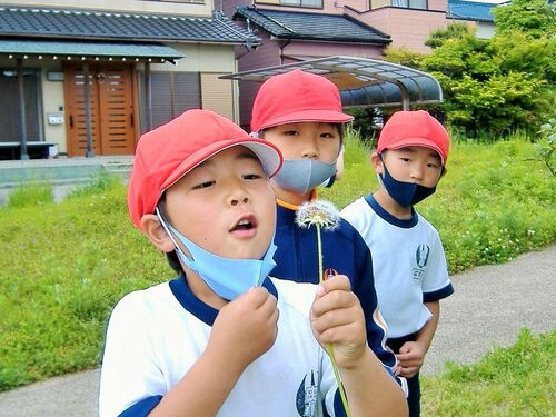 タンポポ、ふ~っ! 1年生は、生活科「こうえんにいこう」でわくわくドキドキの校外学習。今日は、学区にある沢田公園まで、みんなでてくてく歩きます。先日の交通安全教室で教わったように安全第一ですよ。 「あっ、アジサイをみーつけた!」 公園では、遊…