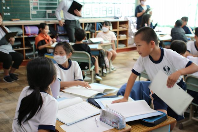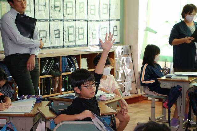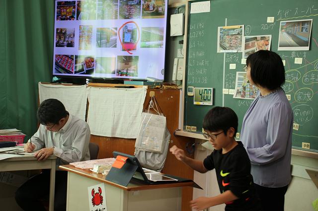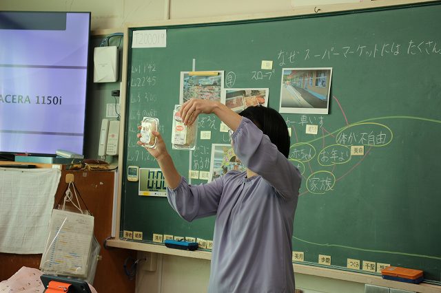 昨日、3年生の社会の授業でスーパーマーケットに人が集まる理由を考えました。懐かしい先生をお招きして、研究授業を行いました。