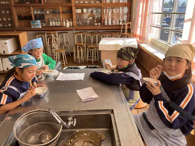 おこげがおいしいね。自分たちの作ったお米だから、さらにおいしかったね。ごちそうさまでした。