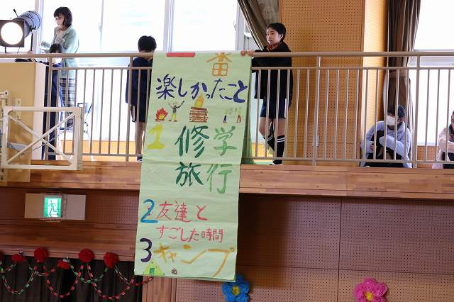 覚えているかなと言っていた6年生でしたが、ノリノリで踊っていました。つぎは、4年生です。6年生にアンケートを取り、その結果を発表します。4年生の演技力、すばらしかったです。