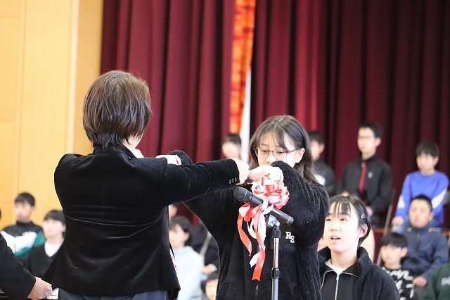 学校記念品・PTA記念品と同窓会入会を行いました。学校記念品授与